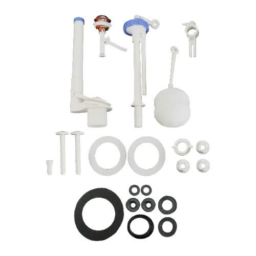 Satu set alat closet duduk (sering disebut flush tank fitting) pada umumnya terdiri dari beberapa komponen utama yang bekerja secara mekanis. Komponen tersebut meliputi pelampung (float valve) sebagai pengatur debit air, flush mechanism (tombol atau tuas) yang menggerakkan aliran air, serta flapper atau seal karet yang menutup saluran pembuangan di dasar tangki. Semua bagian ini bekerja selaras untuk memastikan air tersedia dalam volume yang tepat setiap kali tombol flush ditekan.